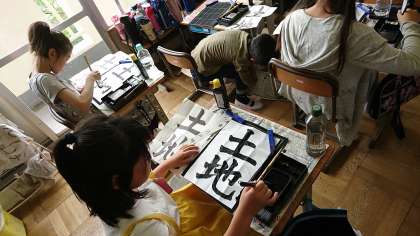 5年2組の書写です。「土地」の練習をしました。