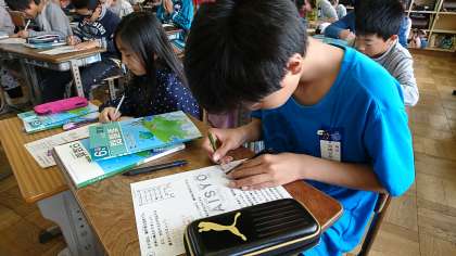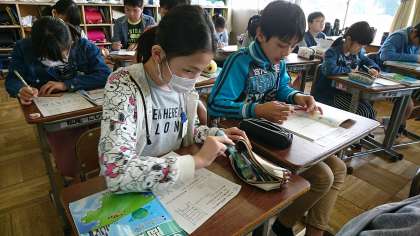6年2組の算数です。線対称と点対称についてのまとめをしています。