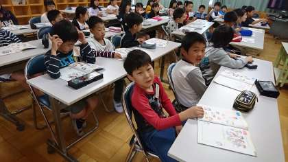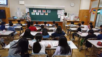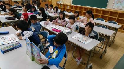 3年2組の外国語活動です。世界の国々の挨拶について学びました。