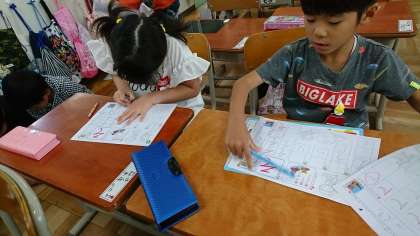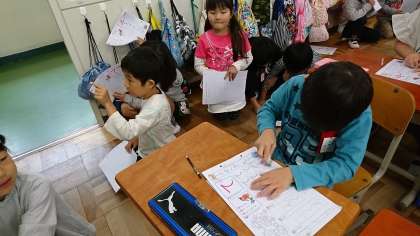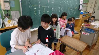 1年1組の国語です。「て」と「そ」の書き方練習です。