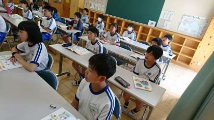 6年1組の外国語活動です。「Can you 〜 ?」の使い方を学びました。