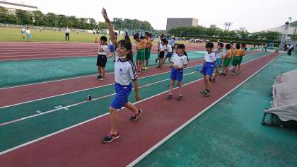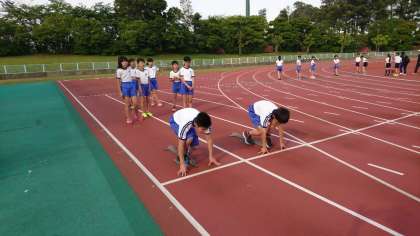 課外陸上部の選手たちが,知多運動公園陸上競技場で現地練習を行いました。