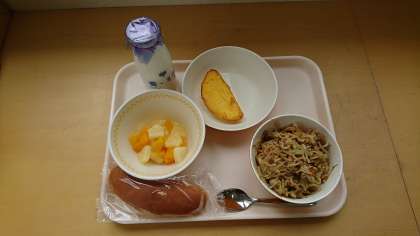 こがたロール ぎゅうにゅう やきそば チーズオムレツ あいちのミカンゼリーポンチ