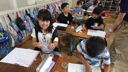 3年2組の理科です。虫の観察をしました。
