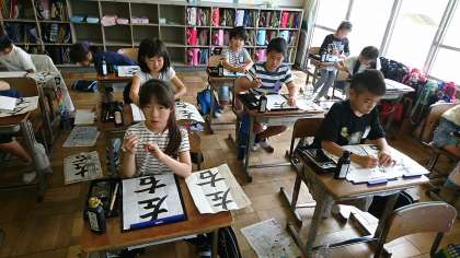 6年1組の書写です。「歴史」の練習をしました。