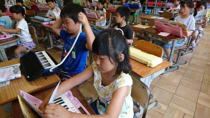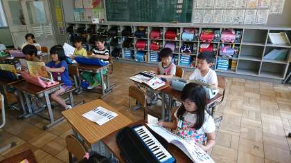 2年3組の音楽です。鍵盤ハーモニカの練習をしました。