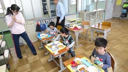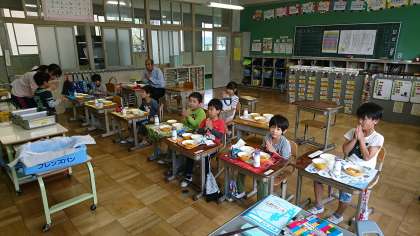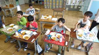 ひまわり学級の給食です。みんなで協力して準備をして,「いただきます!」