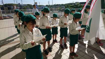 みどりの少年団の児童たちがイトーヨーカドーで結団式を 行いました。