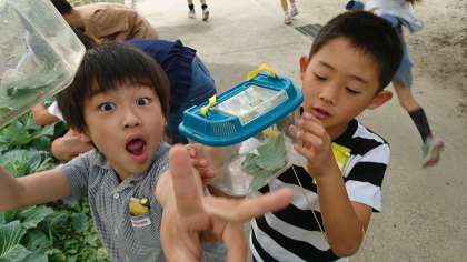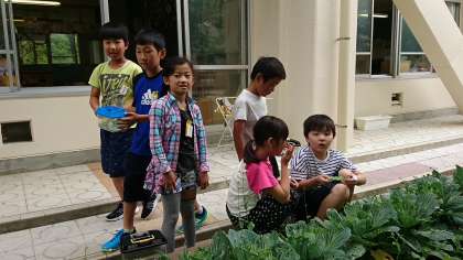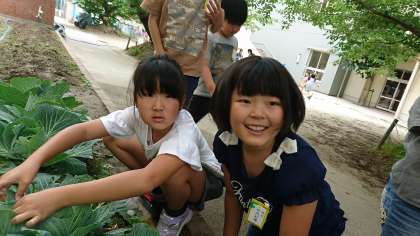 3年生では,学校の花壇でキャベツを栽培し,モンシロチョウの観察に役立てています。幼虫は見つかったかな?