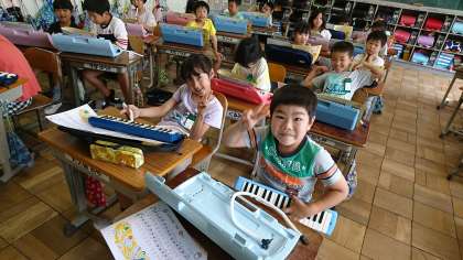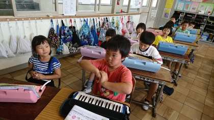 2年3組の音楽です。鍵盤ハーモニカの練習を頑張りました。