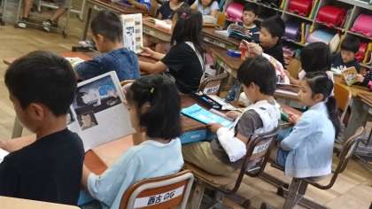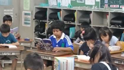 岡田小の朝は,読書タイムから始まります。みんな一生懸命に本を読んでいます。