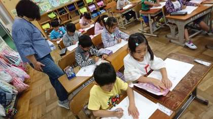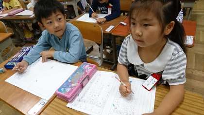 朝の会が終わったら,連絡帳を書きます。1年生も上手に字が書けるようになってきました。