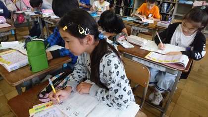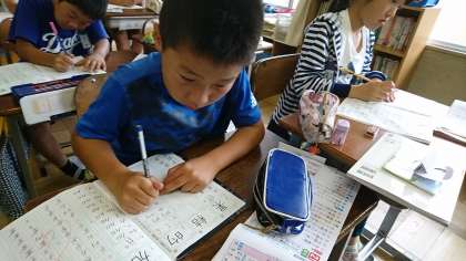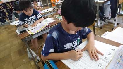 4年2組の国語です。漢字ドリルを頑張っていました。
