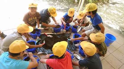 3年3組の理科です。ホウセンカを植え替えしました。