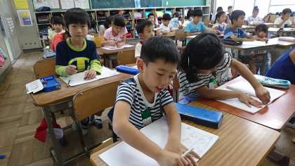 2年2組の算数です。二桁の足し算の計算練習を頑張りました。