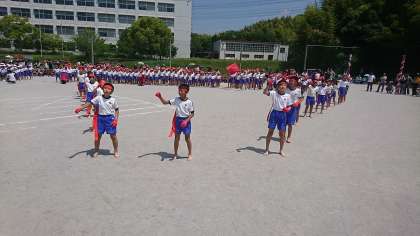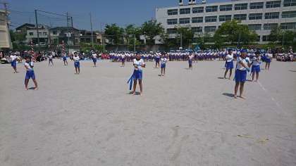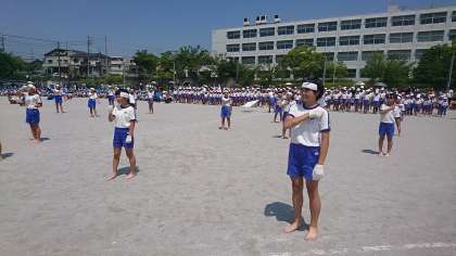応援合戦です。それぞれの団長さんを中心に,どのチームも気合い十分です。
