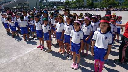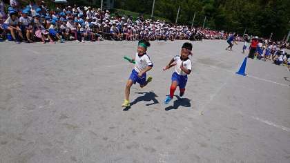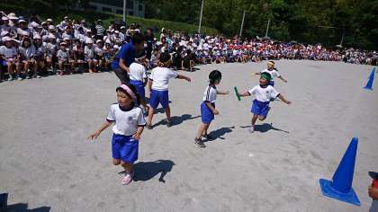 低学年リレーです。それぞれのチームの代表が,全力で走ります。
