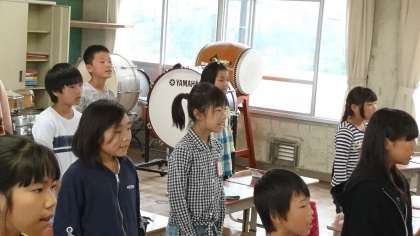 5年1組の音楽です。「believe」の歌の練習を頑張りました。