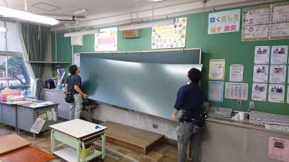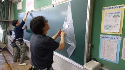 古くなった黒板はチョークで書いた字が見えにくいため,新しく張り替えていただきました。4つの教室の黒板がきれいになりました。
