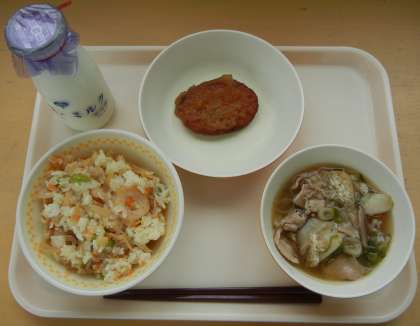 ごはん ぎゅうにゅう たけのこごはんのぐ のっぺいじる とうふハンバーグのおろしあんかけ
