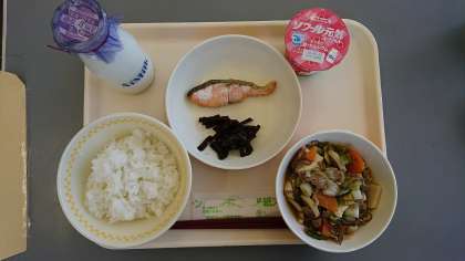 ごはん ぎゅうにゅう すきやきふうに さけのしおやき ふきのつくだに ヨーグルト