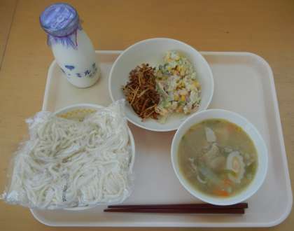 ソフトめん ぎゅうにゅう チャンポンめん ごぼうスティック ツナサラダ たくじょうマヨネーズ