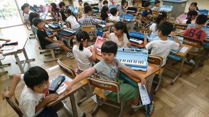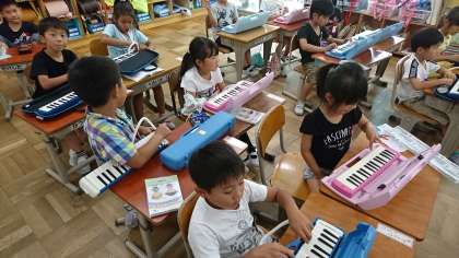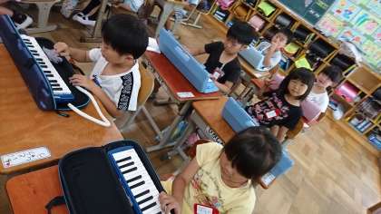 1年2組の音楽です。鍵盤ハーモニカの練習を頑張りました。