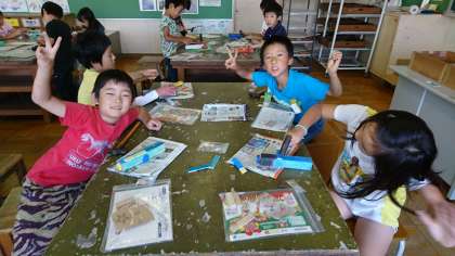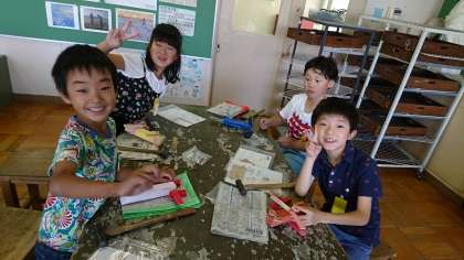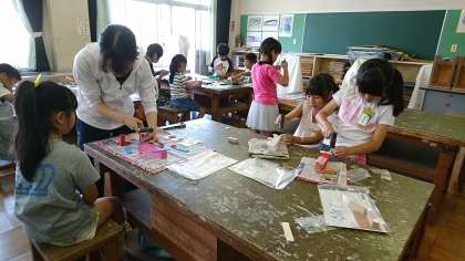 3年3組の図工です。「トントンドンドンくぎ打ち名人」の制作です。