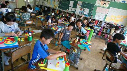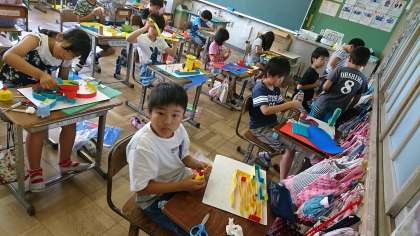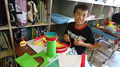 4年2組の図工です。教材「コロコロガーレ」の完成間近です。