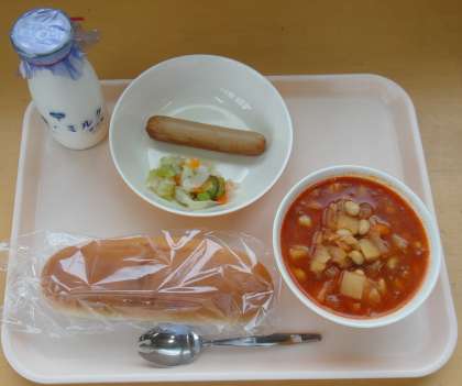ミルクロール ぎゅうにゅう ポークビーンズ フランクフルト シーフードサラダ たくじょうドレッシング
