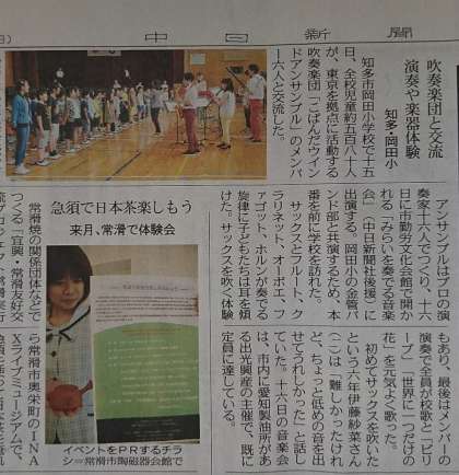 岡田小の金管バンド部の活躍が,新聞に掲載されました。
