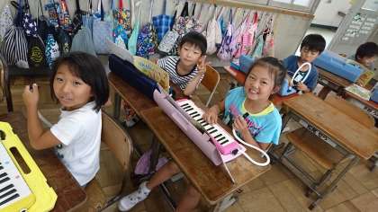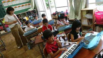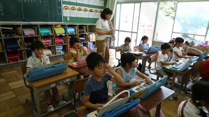 2年2組の音楽です。鍵盤ハーモニカの練習をしました。先生もとても上手です。