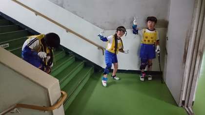 今日は,4年2組で高齢者体験を行いました。雨で蒸し暑い校内を体験キットをつけたまま歩くのは大変です…。