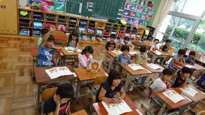1年1組の国語です。「たからものを おしえよう」の学習をしました。