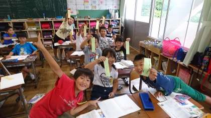 3年2組の学級活動です。七夕の短冊に願い事を書きました。
