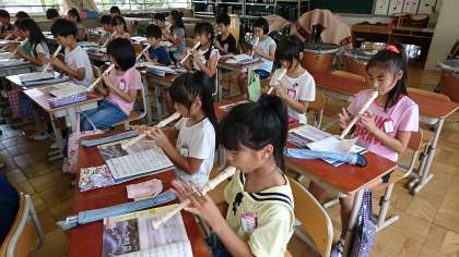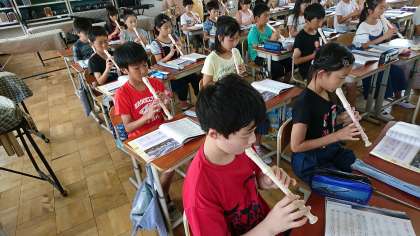 5年3組の音楽です。リコーダーの練習を頑張りました。