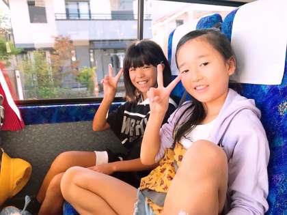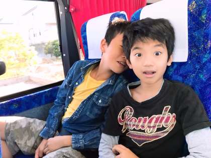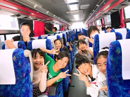 バスの中で楽しそうに過ごしています。