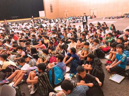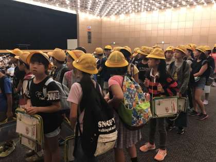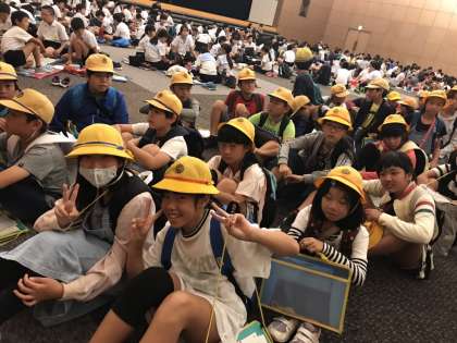 とても大きな会議室です。他の小学校の子達も見学に来ています。