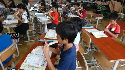 3年1組の音楽です。リコーダーの練習を頑張りました。