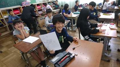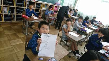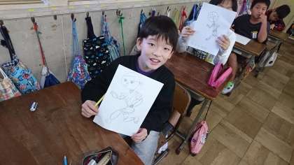 3年2組の図工です。「モチモチの木」の豆太をかきました。