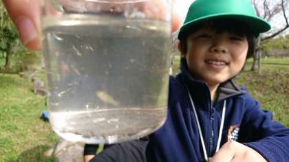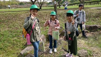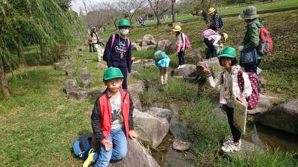 さわやかな秋空の下,自然散策を楽しんでいます。