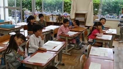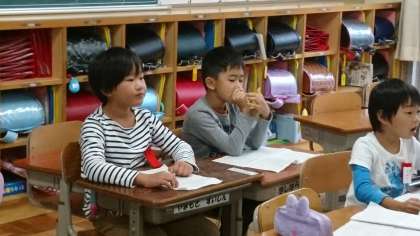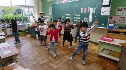 各学年の学習発表会練習がスタートしています。1年生は教室で練習です。