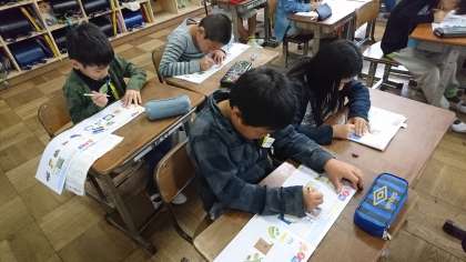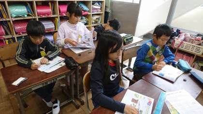 3年2組の国語です。ローマ字の練習を頑張りました。