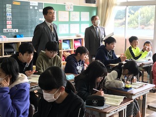 1/21 学校巡回に来ていただきましたよ 公開日 2019/01/21 更新日 2019/01/21 教師の学び 永井教育長、桝内指導主事が、3学期の学校巡回に来てくださいました。 授業や学校環境について、温かいご助言をいただきました。 先生方も日頃の実践を振り返り、改善する機会ととらえ頑張ってくれましたよ。 大人も子どももほめられるとうれしいものですね。 いっそうがんばろうという気持ちになりました。 お忙しい中、ありがとうございました!
