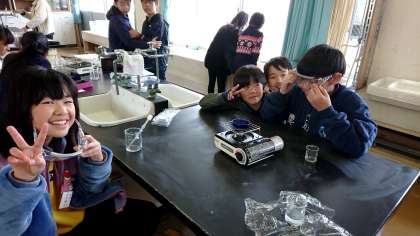 5年2組の理科です。「ものの溶けかた」についての実験をしました。