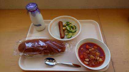 くろロール ぎゅうにゅう ポークビーンズ フランクフルト コールスローサラダ