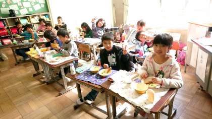 今日の給食は人気のメニューです。2年生の子達も美味しそうに食べていました。