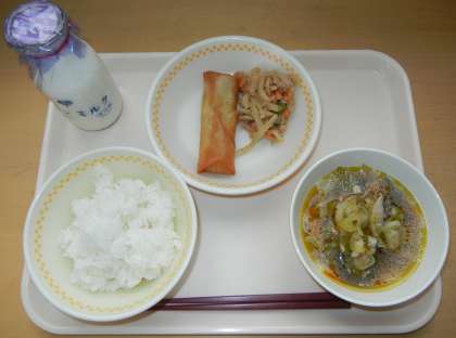 ごはん ぎゅうにゅう はるまき きりぼしだいこんのあえもの ワンタンスープ
