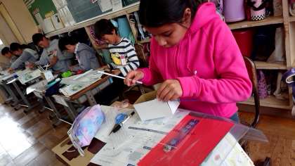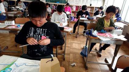 6年1組の図工です。アイデアスケッチから制作に入りました。