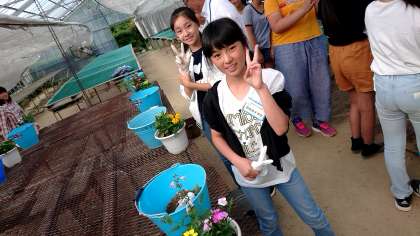 色とりどりのお花を寄せ植えにしました。